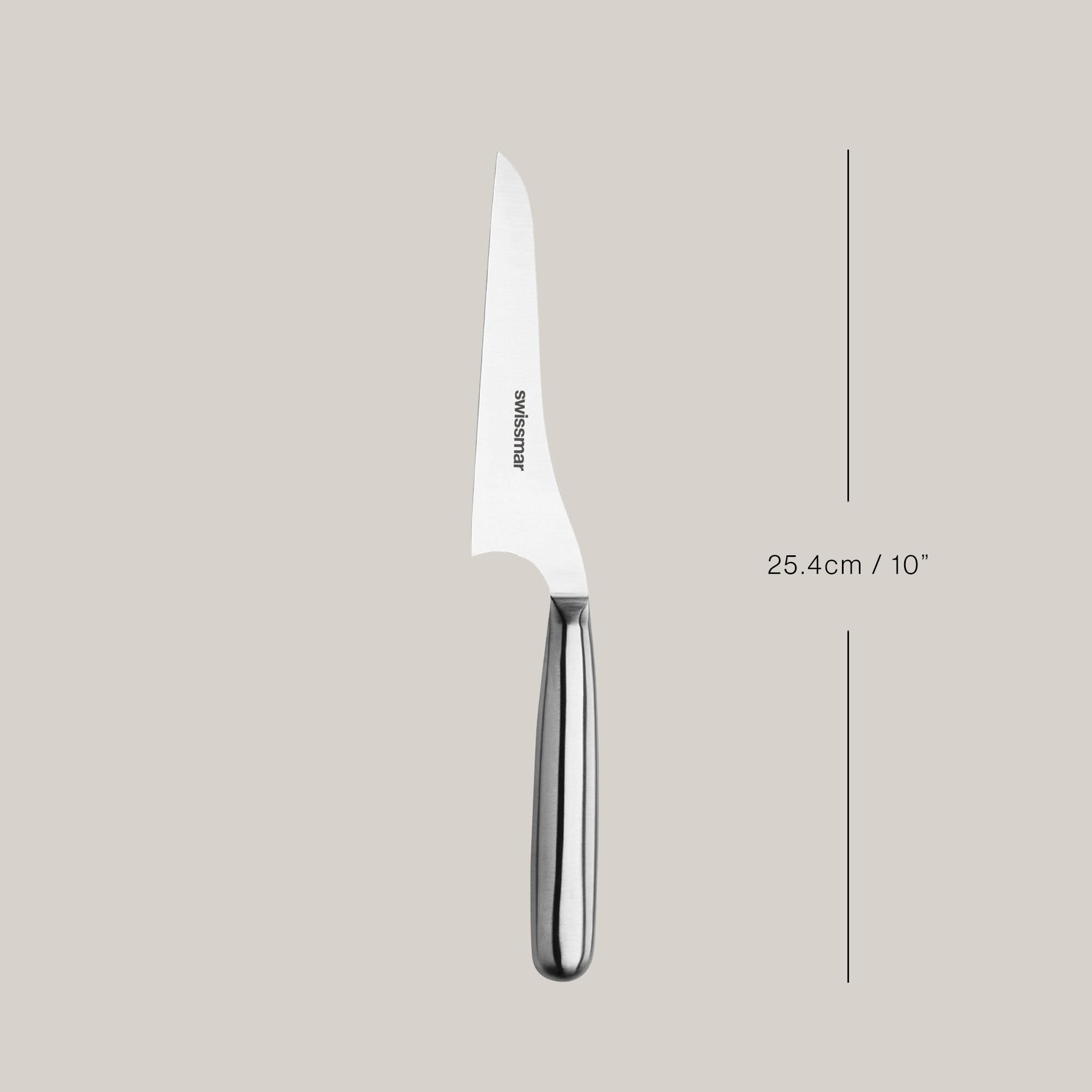Its stainless steel construction and hollow ergonomic handle provide both durability and comfort. Ideal for serving at gatherings or enhancing your cheese experience at home, it is also dishwasher safe for easy maintenance. Backed by a 1-year warranty, this knife ensures quality and longevity with every use.