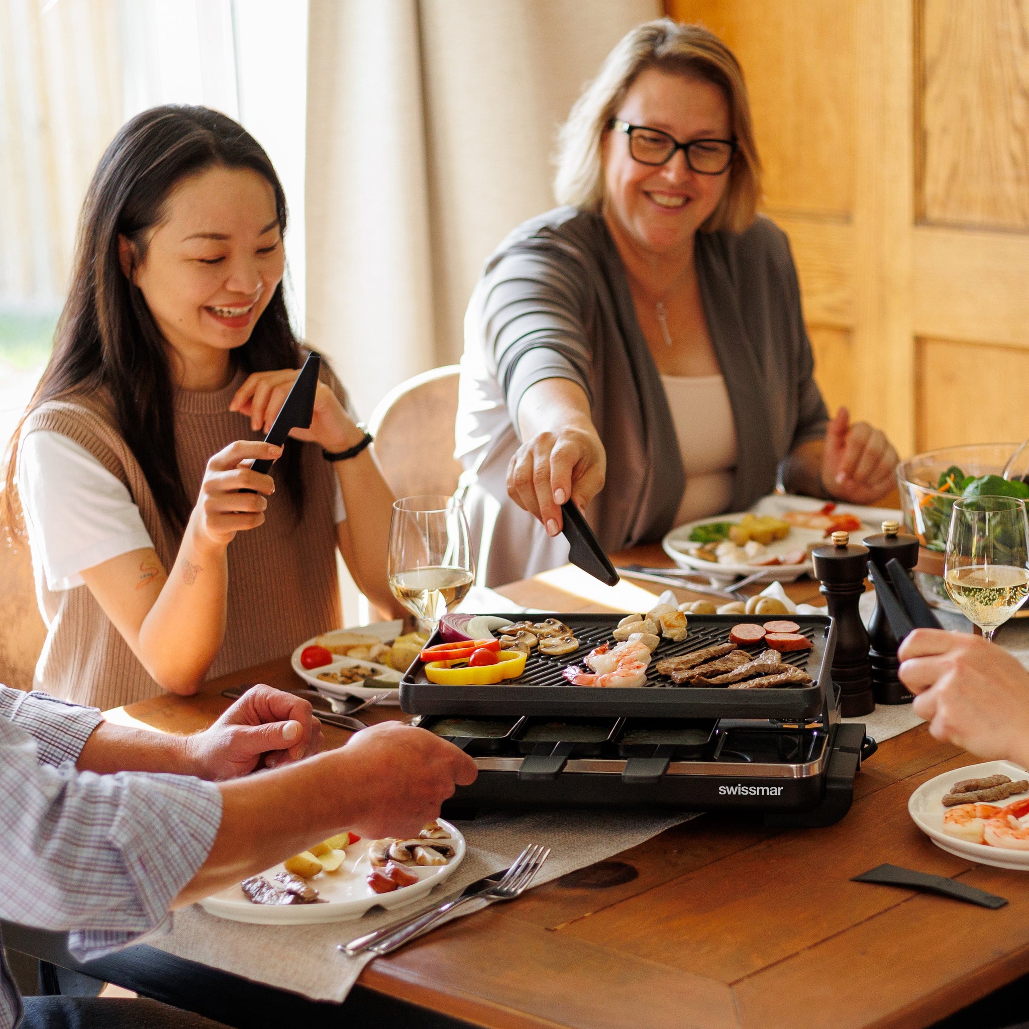 With variable heat control and a 1200-watt heating element, this raclette delivers consistent performance for any meal. The included raclette dishes are coated with a PFAS-free non-stick surface, ideal for melting cheese and preparing individual portions of grilled vegetables, meats, and more. Designed for North American electrical standards (120V / 60 Hz), it's simple to use and clean—just wipe the unit with a damp cloth and handwash the grill plate, dishes, and spatulas. Backed by a 1-year warranty.