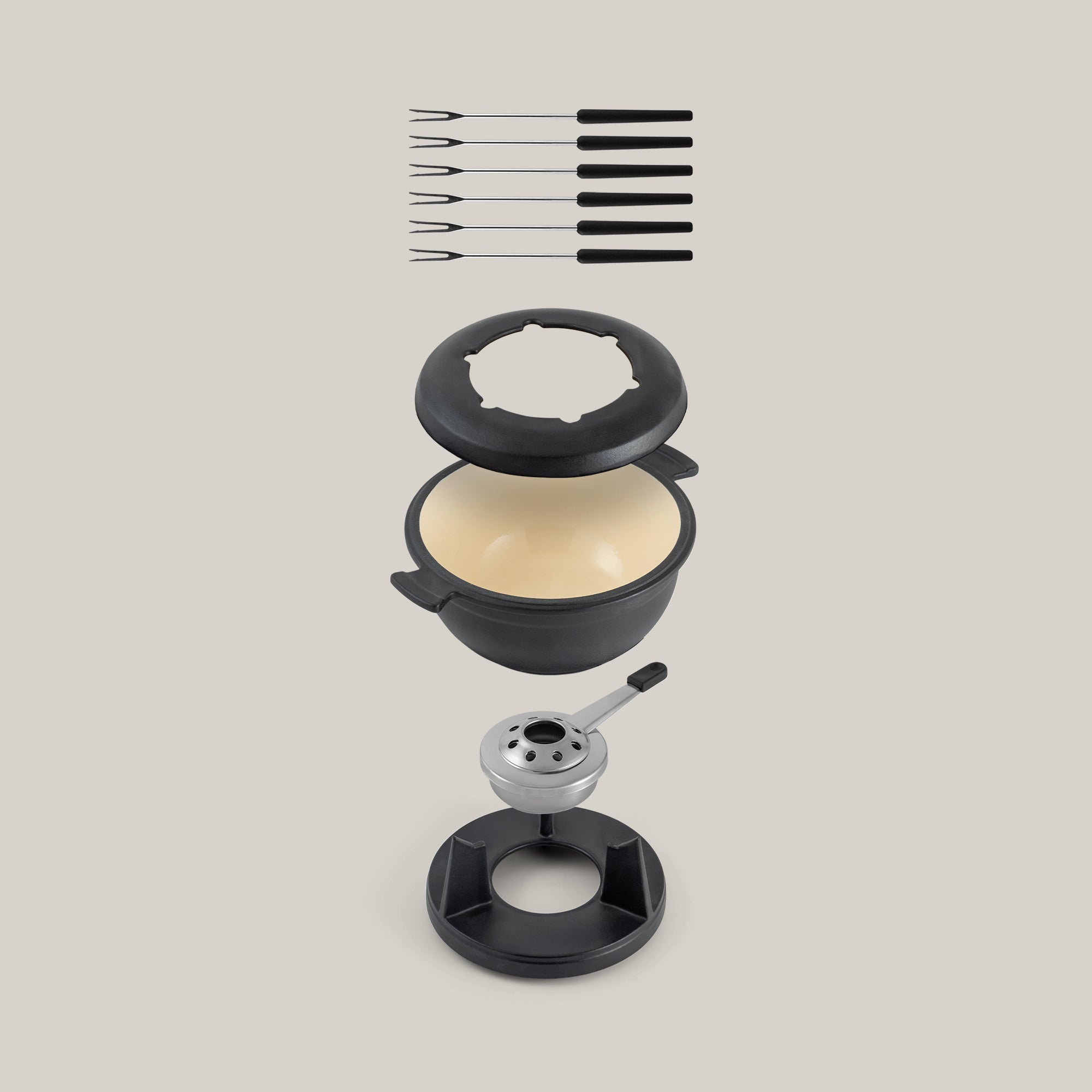 The Lucerne 10-Piece Fondue Set is crafted from high-quality enameled cast iron, delivering exceptional heat distribution and retention to maintain the perfect temperature for all types of fondue—whether creamy cheese, rich chocolate, or sizzling oil and broth. Equipped with a stainless steel burner featuring adjustable heat control, this fondue set is designed for both beginners and seasoned enthusiasts, allowing safe and precise temperature management.